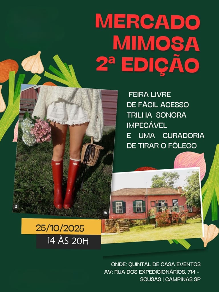 No dia 25 de outubro, sábado, das 14h às 20h, o Mercado Mimosa fará sua segunda edição em uma casa centenária no distrito de Souzas, Campinas.